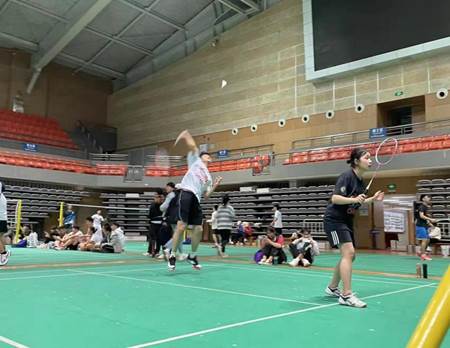半决赛对阵传统强队计算机科学与工程学院分会羽毛球队,首场男单比赛尤为激烈,双方鏖战三局,决胜局以21:20微弱优势拿下比赛,比赛过程中双方选手各显风采,扣杀、轻吊、高远球……球场上充满了喝彩声、加油声。随后又拿下女双和男双两分,最后以大比分3:1顺利晋级冠亚军争夺战。